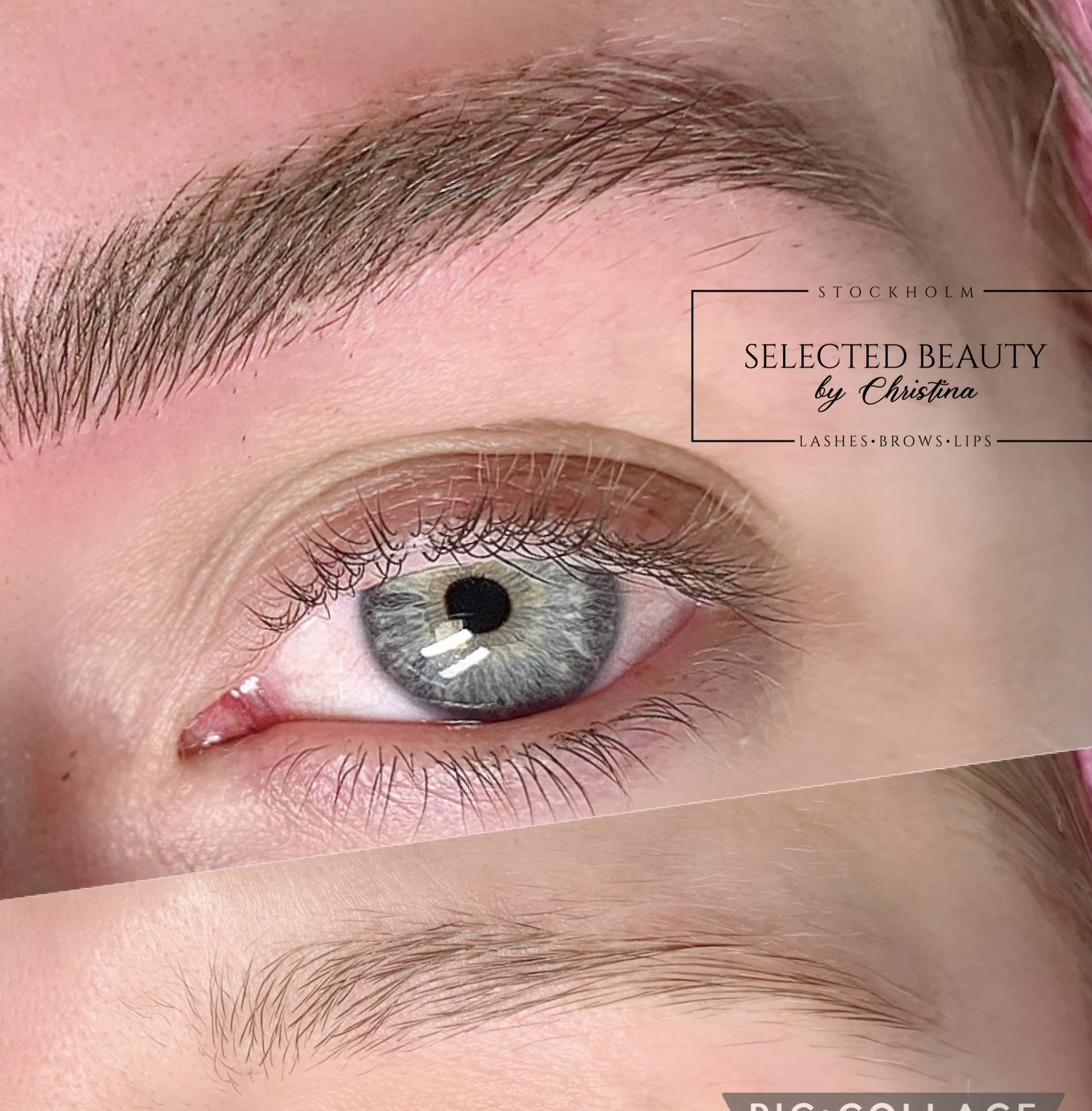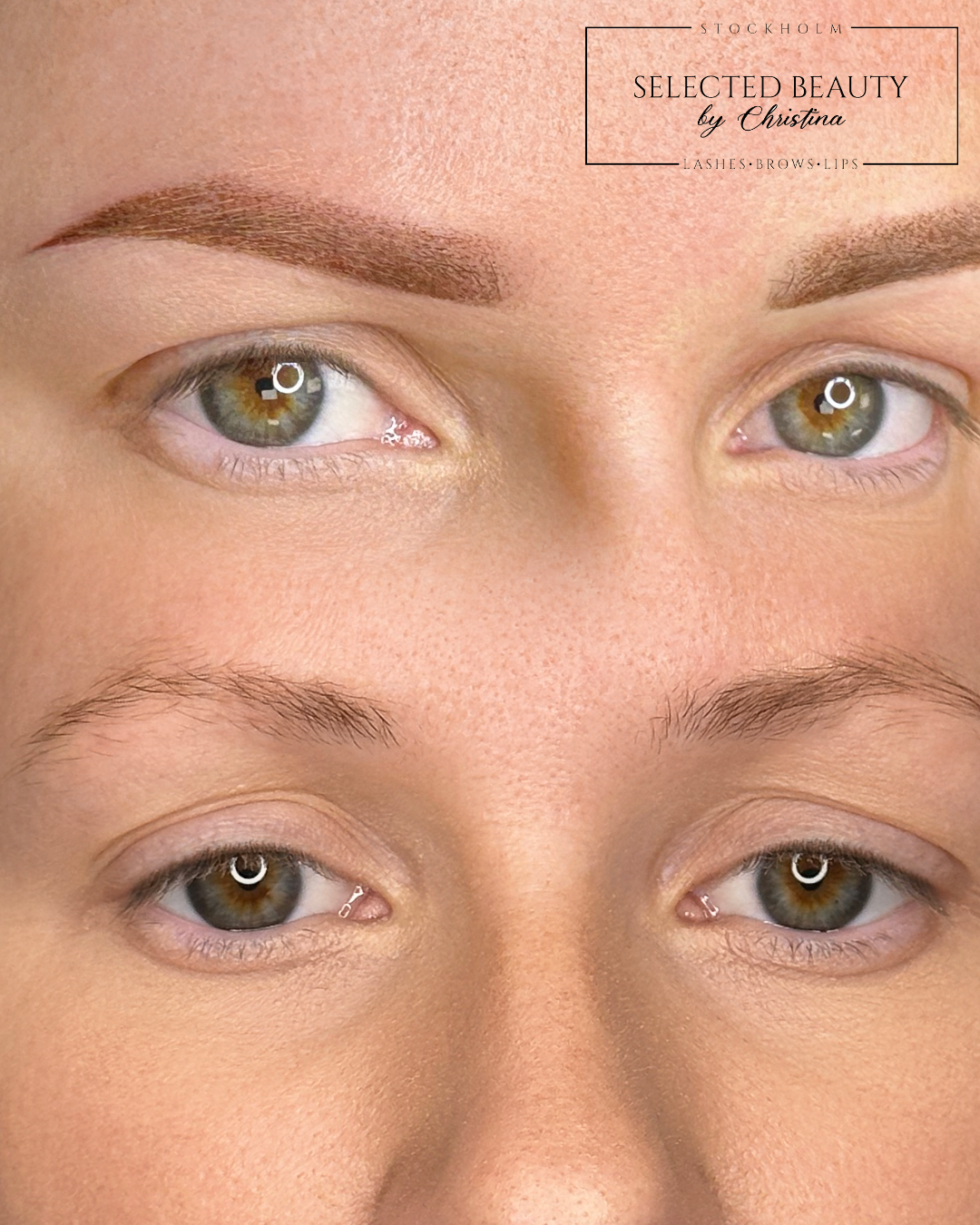 När vi väljer brynfärg utgår vi även här från färgen på dina egna brynstrån. Så om du brukar färga dem så gör det senast 1 vecka innan behandlingen. Man vill att de skapade stråna ska blandas ihop naturligt med dina egna.